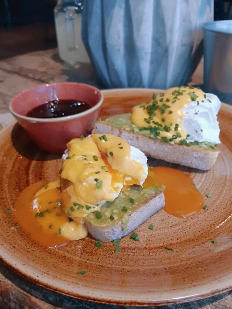 Despite the slightly strange location inside the leisure centre, this is a lovely cafe with an outdoor terrace surrounded by trees where you can enjoy your meal. I tried the veggie pancake stack with eggs, mushrooms, avo and crispy fried onions, as well as the eggs benedict with smoked salmon. Both were delicious.