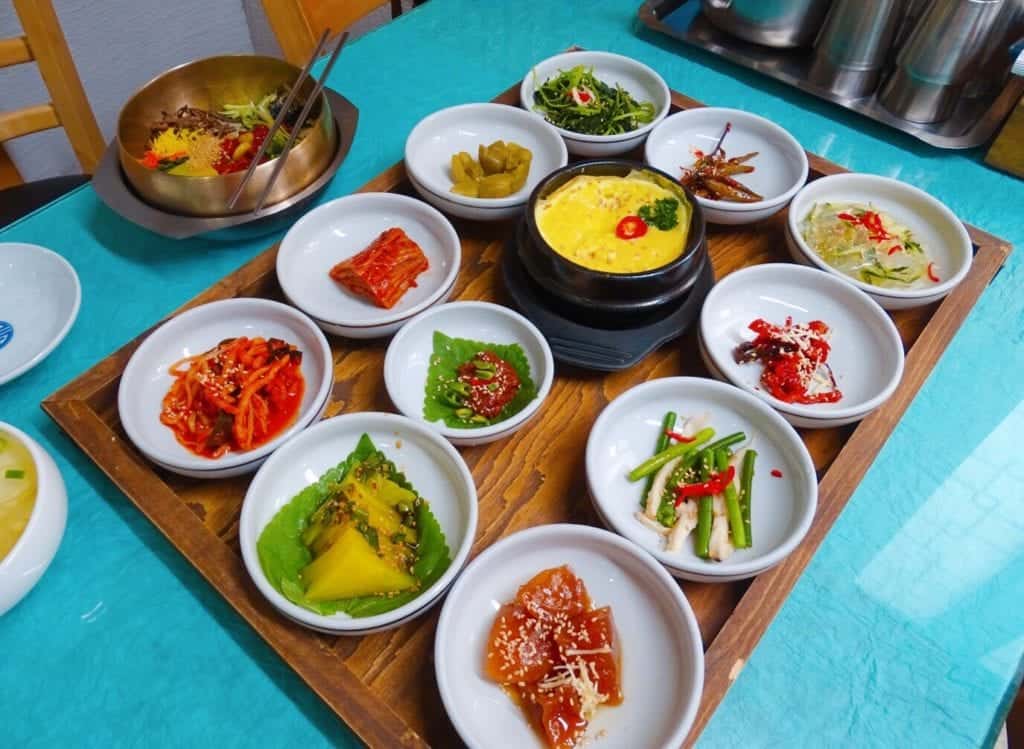 The best meals I had in Korea were those with loads of little side dishes. I ate a feast with the hostel group in Gyeongju which comprised of about 40 small dishes that you ate wrapped in leaves. In Jeonju I had this again at Family House restaurant but it came with a full portion of bibimbap and you could mix them all together – this was probably my favourite meal of June.